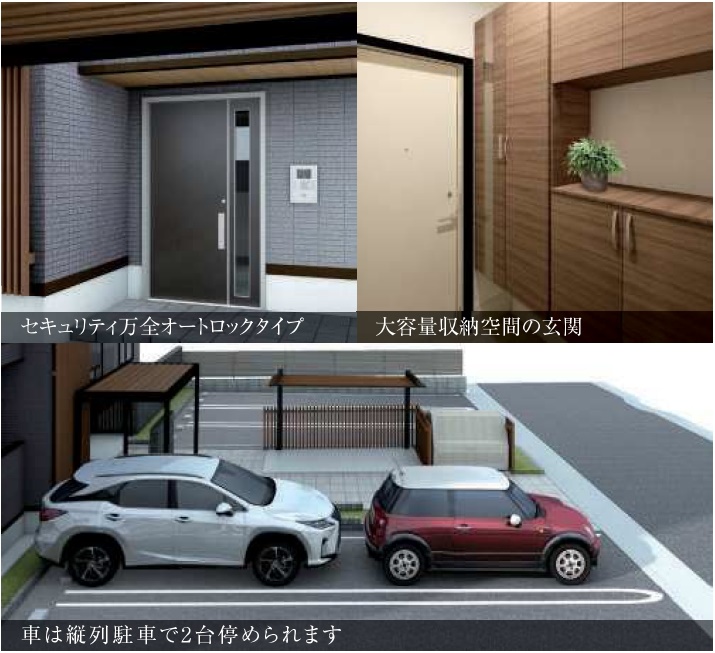 B・T別 オートバス 追焚機能 浴室乾燥機 トイレ 温水洗浄便座 洗面所 洗面所独立 ガスコンロ付 3口以上コンロ カウンターキッチン システムキッチン グリル 収納スペース 全居室収納 クローゼット シューズボックス 床下収納 照明器具 ダウンライト 室内洗濯機置場 給湯 都市ガス 複層ガラス 全居室フローリング 都市ガス給湯 エアコン インターネット対応 インターネット使用料無料 オートロック モニタ付オートロック モニタ付インターホン バルコニー 駐車場2台分